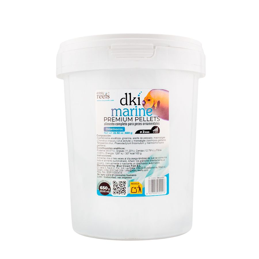 DKI Marine es un alimento completo que ha sido desarrollado para satisfacer las necesidades nutricionales de los peces marinos omnívoros de los biotopos de arrecife coralino.