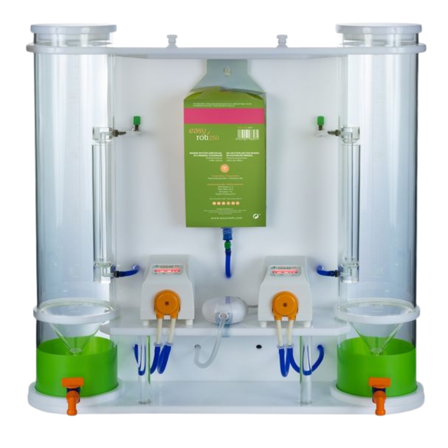 La utilización del Easyractor con Easyroti como alimento del rotífero permite la disponibilidad de alimento continuado para los corales y larvas de peces sin depender de los cultivos de fitoplancton.
